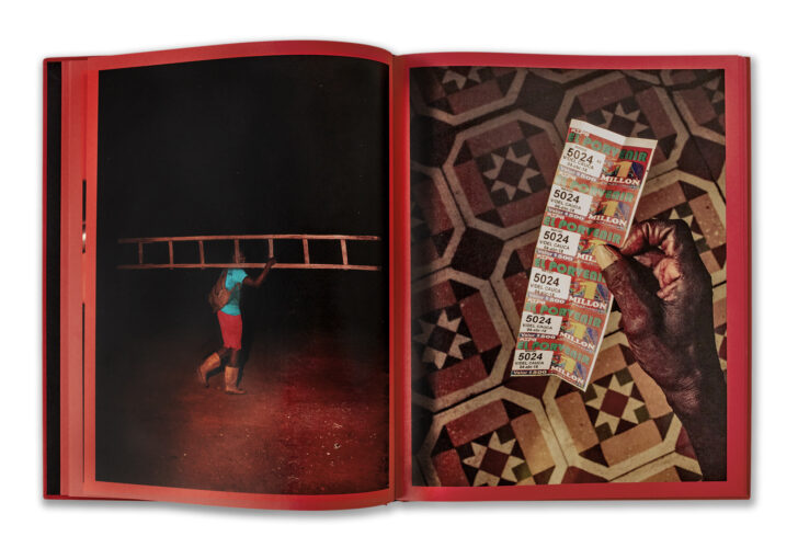 All the images in the book appear to have been taken at night and are presented against a vivid red background. The title, Kalabongó—which means “firefly”—suggests that, like a spark igniting in the darkness, the night has often been a precious ally in the struggles for freedom.