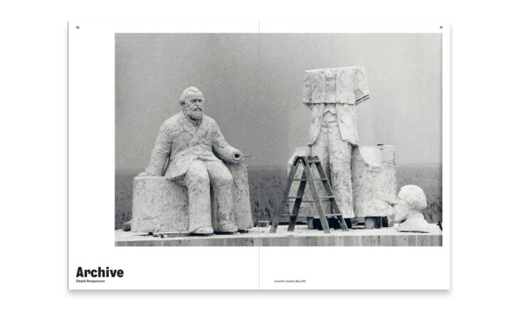 Bergemann began photographing informally, before receiving an official commission from the Ministry of Culture in 1977. Over the course of eleven years, she captured each stage of the process, from the earliest models to the monument’s inauguration on April 4, 1986.